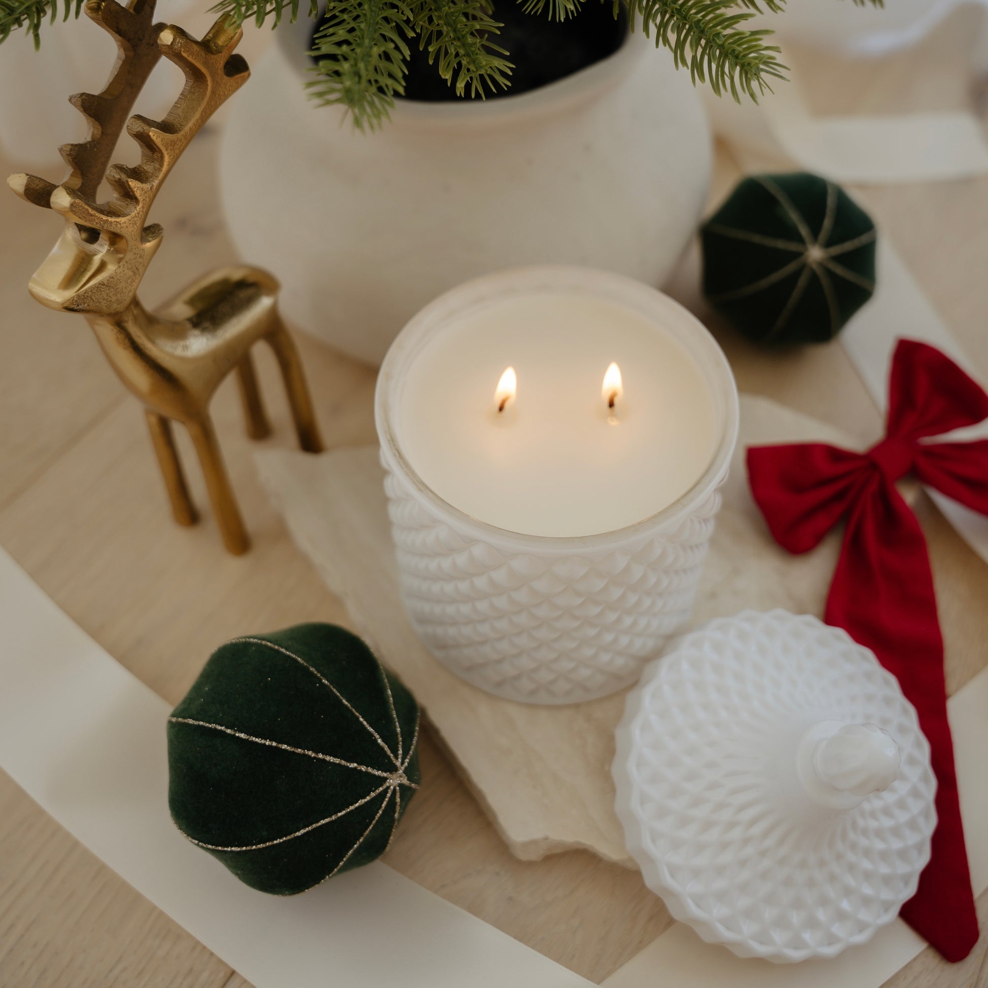 Our statement piece for 2025, The Christmas Aura draws everyone in. Double wicked for an elegant fragrance throw, she is perfect for greeting your guests as they walk through the door, holding attention to your perfectly styled dining table, or to show someone special how much they truly mean.✨