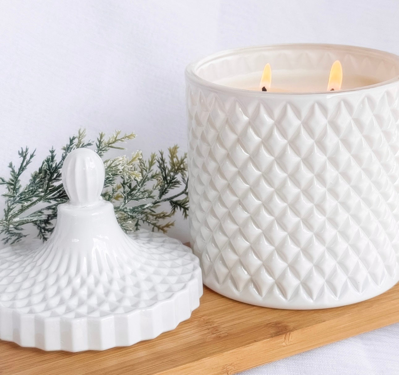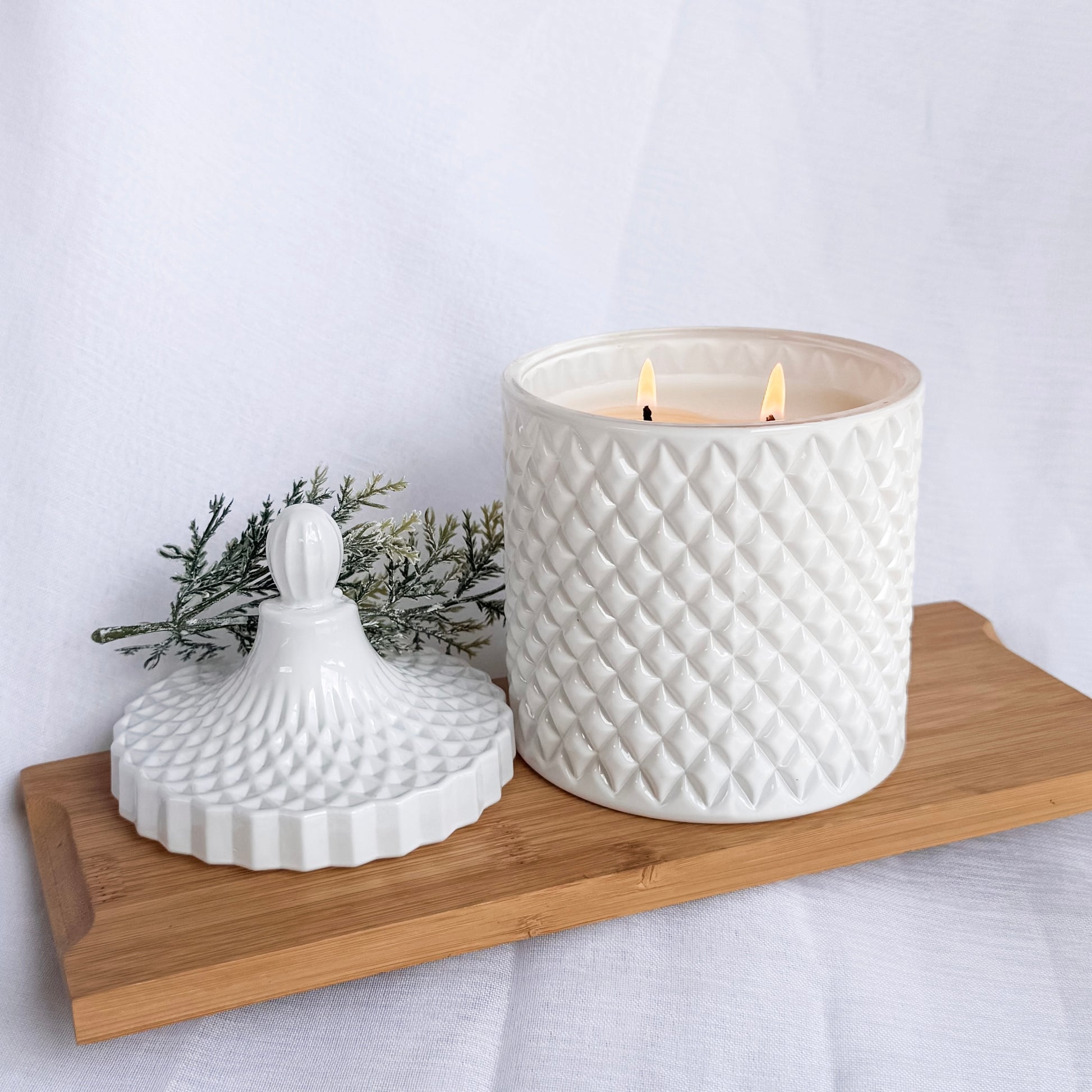 This candle is a show stopping and timeless piece of decor, that comes with its own matching lid to lock in the scented charm until it's required. ❤️
